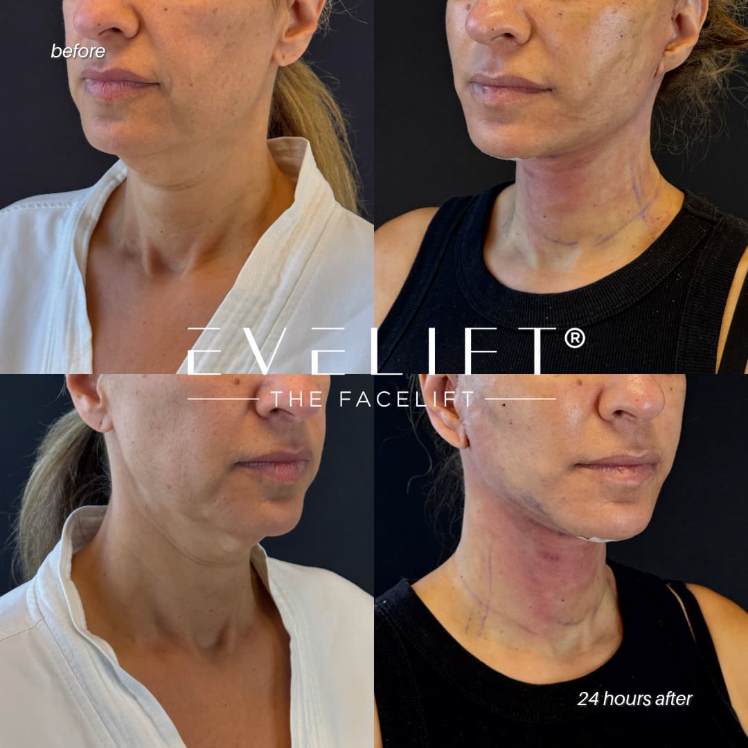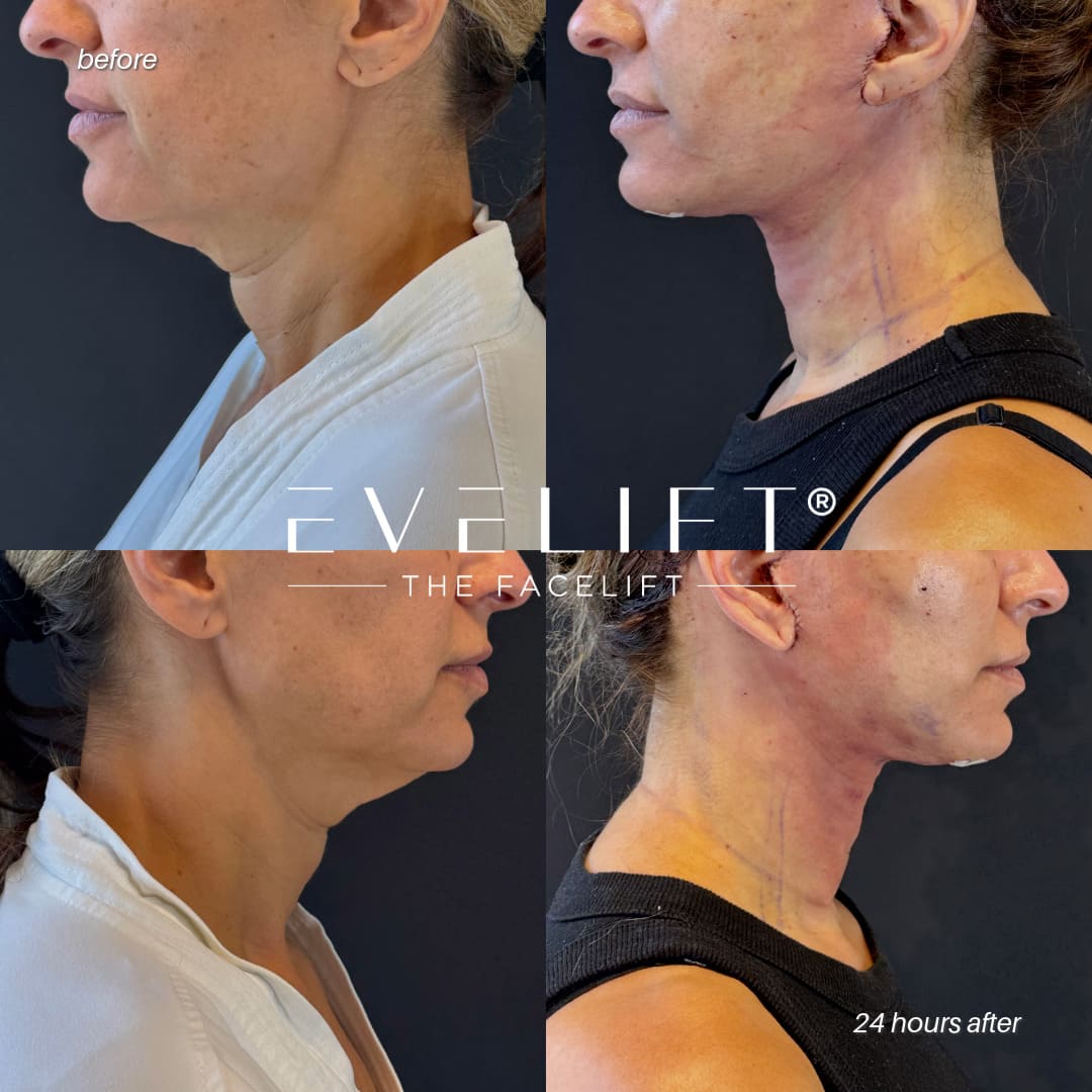 The EVELift® is a SMAS facelift and corset neck lift that rejuvenates the lower face and neck, addressing jowls, jawline definition, excess skin, and platysma bands. This technique achieves a naturally refreshed, lifted appearance—never “over-pulled” or artificial—and provides long-lasting results that age gracefully with you.